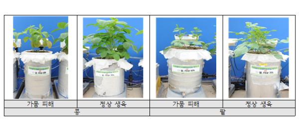 토양 수분 18% 이하로 낮아질 경우 콩은 뿌리 길이 최대 70%, 뿌리 수 88%가 감소 됐으며, 팥은 뿌리 길이 73%, 뿌리 수 89%가 감소했다.