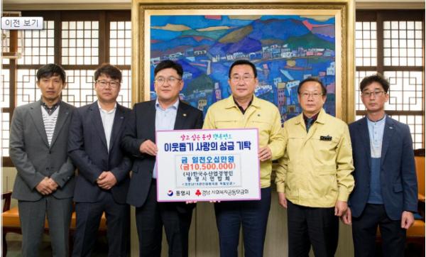 이날 기탁 받은 성금은 사회복지공동모금회 코로나19 특별모금 사업을 통해 통영시지역사회보장협의체로 지정 기탁되어 지역의 어려운 곳에 코로나19 예방을 위해 쓰일 예정이다.