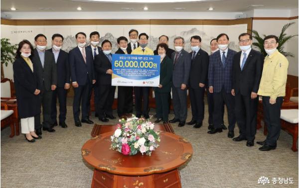 도는 기부 받은 성금을 충남 사회복지공동모금회에 전달해 코로나19 예방 및 치료를 위해 활용할 계획이다.