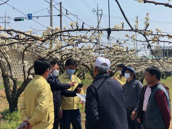 강 시장은 이날 농촌진흥청 국립원예특작과학원 배연구소, 나주배원예농협 관계자들과 함께 저온 피해 예방을 위한 농가의 적기 대응을 당부하기도 했다.