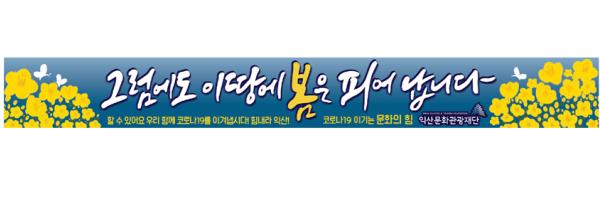 (재)익산문화관광재단(대표이사 장성국)은 04월 10일부터 익산지역 20곳의 행정게시대에 “코로나19 극복 응원 현수막”을 게시하기로 하였다.