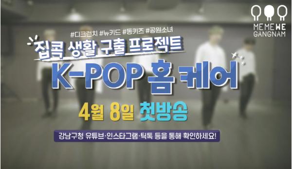 K-POP 홈케어는 강남구의 연예 기획사들이 국가적 위기를 함께 극복하자는 취지에서 재능기부로 이뤄졌으며, 아이돌 그룹 디크런치·뉴키드·동키즈·공원소녀가 우선 참여한다. 향후 관내 기획사들이 릴레이로 동참해 다양한 아이돌 그룹의 댄스 영상을 제공할 계획이다.