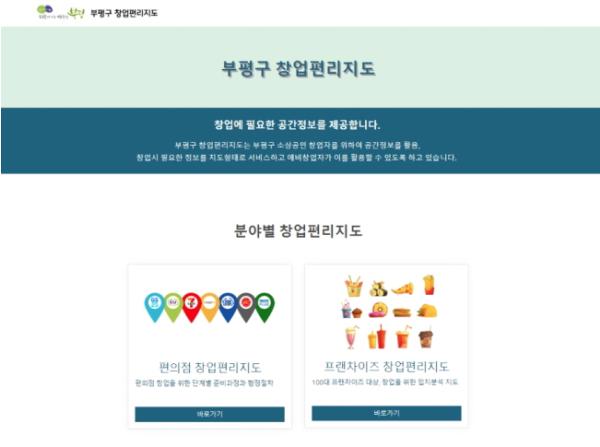 부평구(구청장 차준택)가 지방정부 중 전국 최초로 편의점 등 생활밀접업종의 분야별 창업 정보를 한 눈에 볼 수 있는 ‘창업편리지도’(https://icloud.incheon.go.kr/arcgis/apps/sites/#/business)서비스를 1일부터 제공한다.