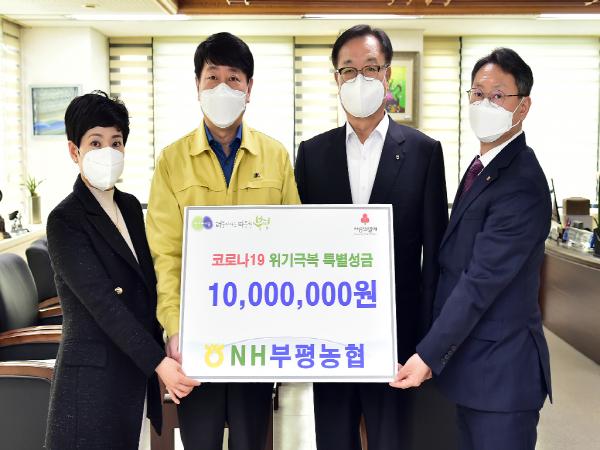 이번 성금은 인천사회복지공동모금회를 통해 부평구 코로나19 극복을 위한 사업비로 지원될 예정이다.