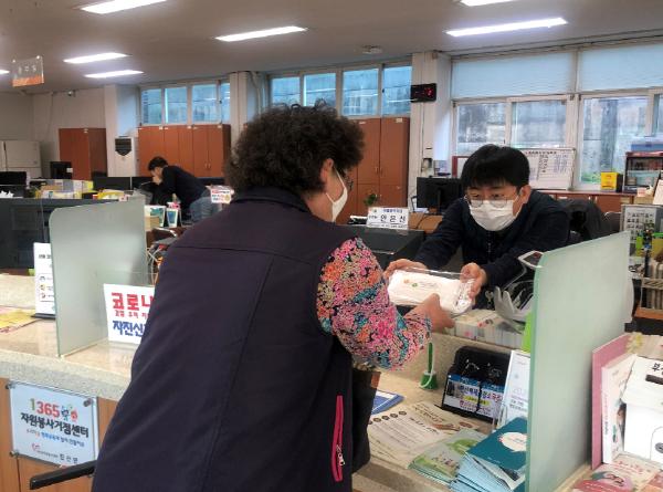마스크는 읍면 마을 분담직원, 이장, 부녀회장이 함께 각 가정에 배부에 나섰으며, 인당 10개씩 배부되고 남은 2600개의 마스크는 사회복지시설에 배부했다.
