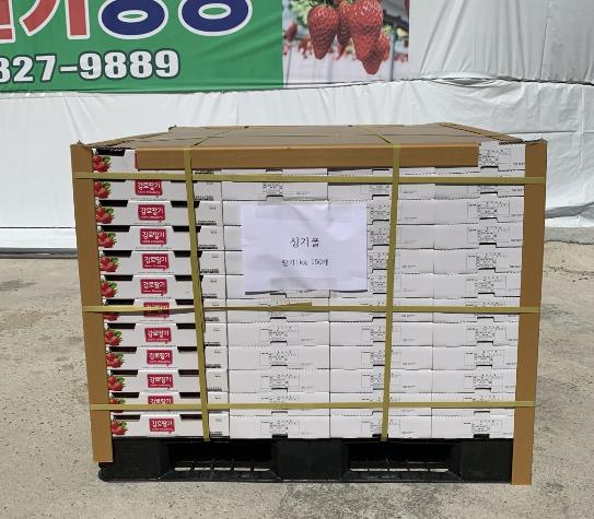 김천시(시장 김충섭)는 지난 2월 태국 백화점 수출입점에 이어 싱가포르 백화점 입점을 위해 지난 6일 김천딸기 150kg 수출길에 올라 5월까지 지속해서 수출이 이어진다고 밝혔다. 이날 수출된 “알타킹 딸기”는 김천에서 태국 상류층 백화점에 입점 되어 많은 호평을 받은 품종으로 경북도청 과채류시험연구소에서 출원한 신품종 딸기로 이 딸기는 복숭아향이 나고 경도와 보구력이 좋을 뿐만 아니라, 저장성이 뛰어나 수출에 적합한 품종으로, 김천에서 70%이상 생산되고 있다.