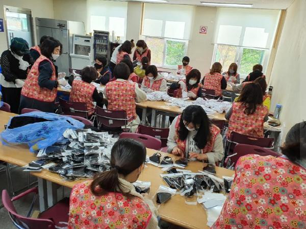 마스크와 교체형 필터 개별포장 및 분류작업은 어린이집 연합회(회장 이연숙) 자원봉사자 50명이 참여하여 방역 등 철저한 안전수칙을 이행한 가운데 이루어졌다.