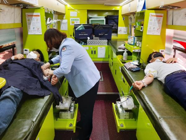 울산 중구 소속 직원들이 코로나19로 인한 혈액수급 악화를 해소하고자 단체 헌혈에 동참했다.