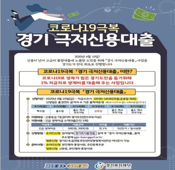 보다 자세한 사항은 ‘경기 극저신용대출’ 사업 전용 콜센터(1800-9198)에 문의하면 된다.