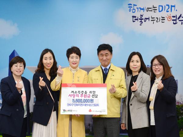 연수구(구청장 고남석)는 연수구 정부지원 어린이집 연합회(회장 전수영)로부터 8일 인천사회복지공동모금회를 통해 저소득층을 위한 후원금 560만원을 기탁 받았다.