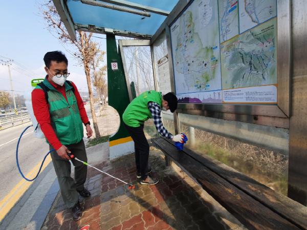 동두천시 상패동 새마을협의회(회장 마익수)는 지난 7일 버스정류장 등 다중이용시설을 중심으로 코로나19 대응 방역활동을 실시했다.
