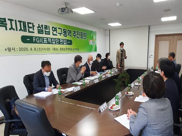 김천시는 2020. 4. 8.(수) 『김천복지재단』설립을 위한 추진회의 및 FGI(표적집단 면접)를 개최하였다.