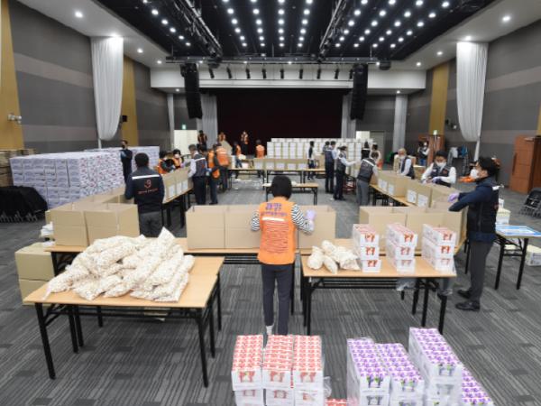‘코로나19 함께 극복! 희망의 감동보따리, 길을 열다!’라는 메시지를 담은 ‘희망 감동보따리’는 비타민, 찹쌀떡, 백설기, 라면, 양갱, 주스 등 식료품과 KF94 마스크로 구성, 관내 독거노인과 소년소녀가장 등 소외가정에 전달했다.