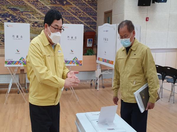 주낙영 경주시장은 9일 제21대 총선 사전투표소 현장 점검에 나섰다