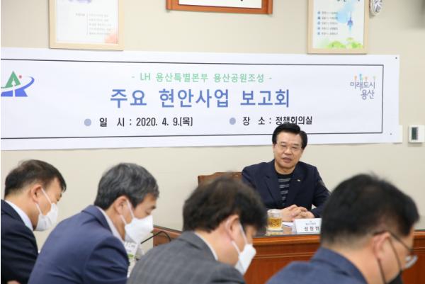 서울 용산구(구청장 성장현)가 9일 구청 정책회의실에서 '용산공원 조성 현안사업 보고회'를 개최했다.