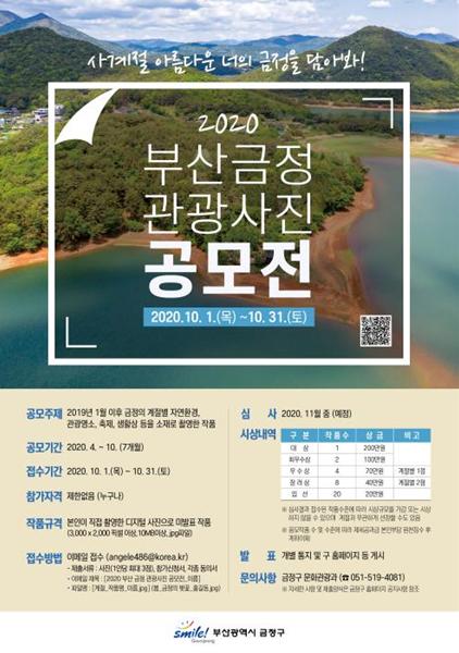 공모 주제는 금정의 계절별 자연환경, 관광명소, 축제, 생활상 등이며 1인당 최대 3점까지 출품할 수 있다. 내·외국인 누구나 참여할 수 있으며, 2019년 1월 이후 촬영한 디지털 사진과 서류를 이메일(angele486@korea.kr)로 제출하면 된다. 접수기간은 2020년 10월 1일부터 10월 31일까지로 심사를 거쳐 12월 초 수상작을 발표할 계획이다.
