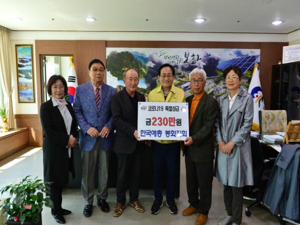 한국예총 봉화지회(회장 정해수)에서 4월 8일 봉화군청을 방문하여 코로나19 극복을 위해 써달라며 특별성금 230만원을 기탁했다.