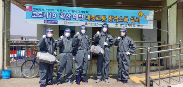 자원봉사센터 소속 회원들은 지난 3일부터 금요일마다 새마을지도자 함안군협의회, 제39사단 화생방대대와 함께 가야와 군북에 소재한 버스터미널, 공중화장실, 버스실내외 등에 방역활동을 벌이고 있다.