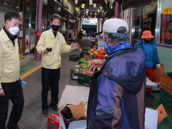 군청 및 읍사무소 직원 15명, 오전 6시부터 울진읍 공설시장 외부인 차단 총력