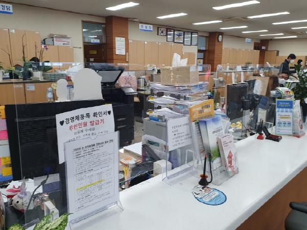 이번 투명 가림막 설치는 가족관계, 주민등록, 농지원부, 직불제, 장애인, 일자리 상담 등 모든 민원 창구에서 이뤄졌으며, 민원인과 민원 창구 공무원의 접촉을 최소화하여 코로나19 전파 확산을 차단하기 위해 마련됐다.