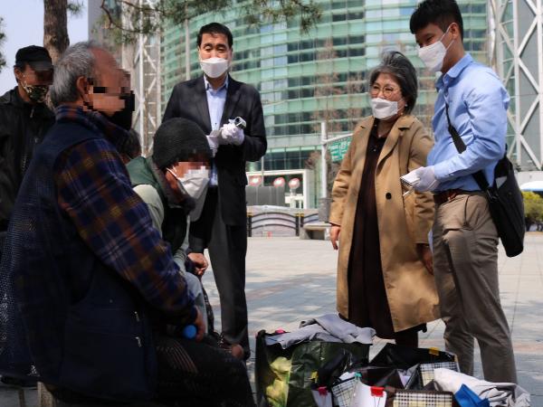 아울러 발열 체크나 마스크, 손세정제, 코로나19 감염예방수칙 안내문 등을 전달하고 있으며 무료급식소 운영 중단으로 식사하기 어려운 노숙인들을 배려하여 식료품 또한 제공한다.