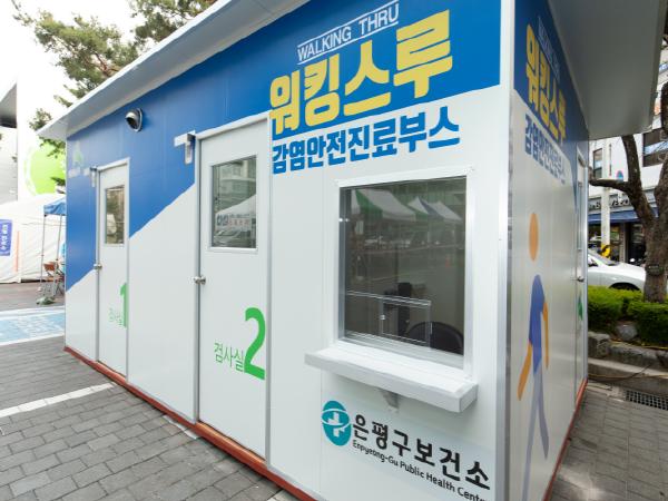 은평구에서는 선별진료소 김시완 의사(사무관)의 아이디어와 설계로 ‘은평형 워킹스루’를 만들었다. 코로나19가 터진 후 일선에서 검체채취를 담당해온 김 의사는 “방호복을 장시간 착용하면 체력소모가 매우 크다”며 “새로 만든 검체채취실에서는 비닐가운만 입고 간편하게 임해 피로도를 줄일 수 있다. 앞으로 비가 오거나 기후가 나빠지면 기존 선별진료소는 한계를 드러낼 수 밖에 없다”고 취지를 밝혔다.