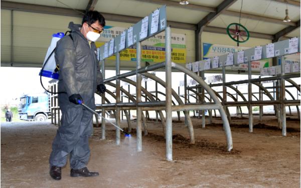 장영수 장수군수가 4월 9일 장계시장 및 우시장에서 코로나19 확산 방지를 위한 방역활동을 펼치며 주민들의 불안감 해소에 나섰다.