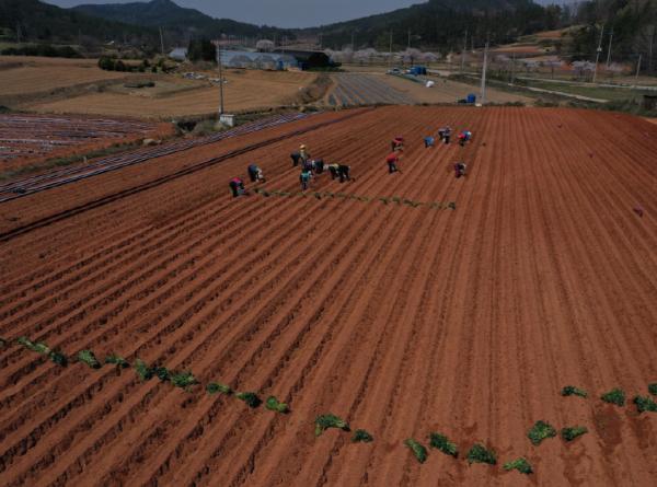 해남의 대표 특산물 고구마 순 심기가 한창이다.