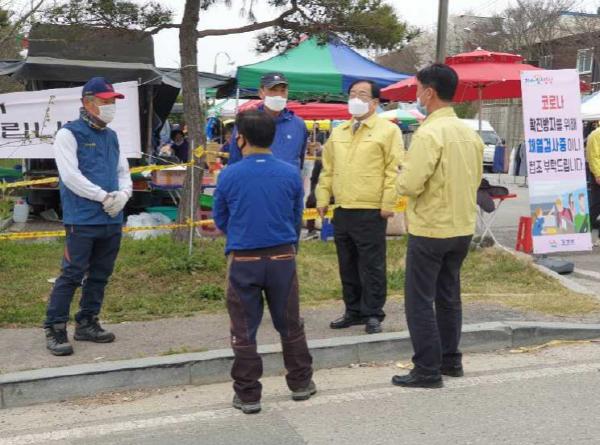 김준성 영광군수는 휴일인 지난 11일 오일장을 방문해 발열체크 현장을 점검했다.
