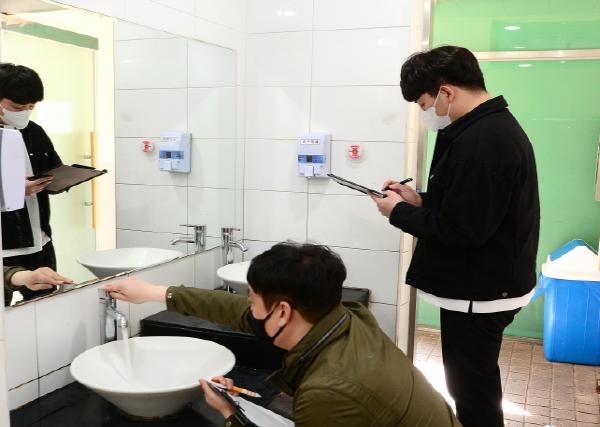 특히, 코로나19 감염병 예방을 위해 출입문, 변기레버, 세면기 등 접촉이 많은 시설물은 매일 2~3회 소독하고, 손소독제가 비치되지 않은 화장실에 대해서는 즉시 비치한다.