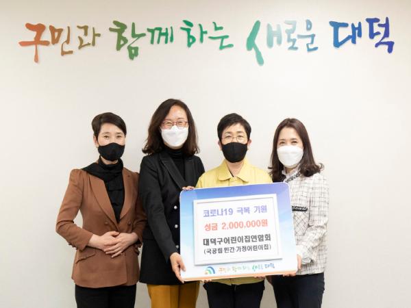 대덕구어린이집연합회가 지난 13일 코로나19 극복을 위한 성금 200만 원을 대덕구(구청장 박정현)에 기탁했다.