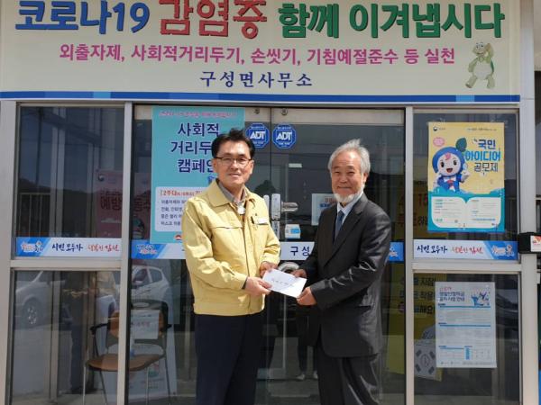 강희현 구성면장은“이번에 배금도가·배금초 대표인 김보홍, 정현선부부가 코로나-19 사태로 어려운 시기에 고통 받는 이웃을 위해 성금을 기탁해 준데 대하여 깊은 감사를 드린다며 면에서도 코로나-19가 하루 빨리 종식되도록 확산방지를 위해 최선을 다해나가겠다고”했다
