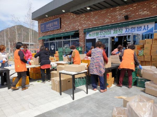 ‘음악역1939 로컬푸드 직매장’에서 이루어지는 상품 포장에는 공무원을 비롯해 군 여성단체협의회 및 한국여성농업인 군 연합회 회원들이 자원봉사자로 참여해 일손을 보태는 등 코로나19 위기 극복에 동참하고 있다.