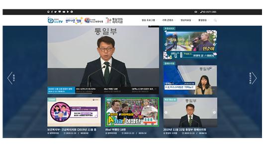<통일방송> 및 <통일교육원> 누리집과 연동 탭을 두어 상호 이동이 쉽게 만들었다.