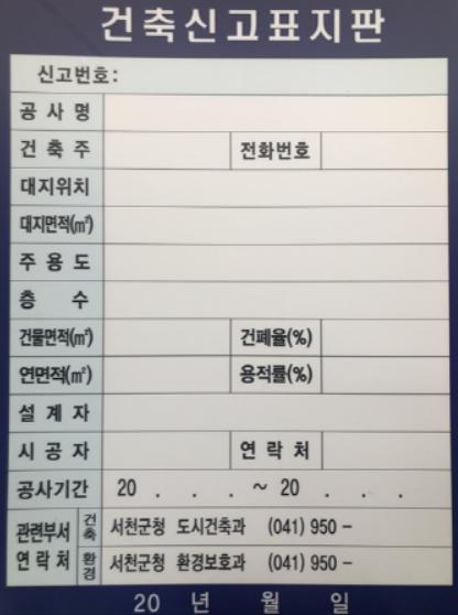 충청남도 서천군(군수 노박래)은 건축행정 건실화를 위해 4월부터 건축허가표지판 설치 대상을 확대할 예정이다.
