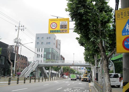 구는 ‘과속 및 신호위반 단속 카메라’ 설치를 원칙으로 하되, 통학로가 협소하고 중앙선이 설치되지 않은 이면도로에는 운전자에게 경각심을 주어 차량 속도를 줄일 수 있도록 유도하는 ‘과속경보시스템’을 설치한다.