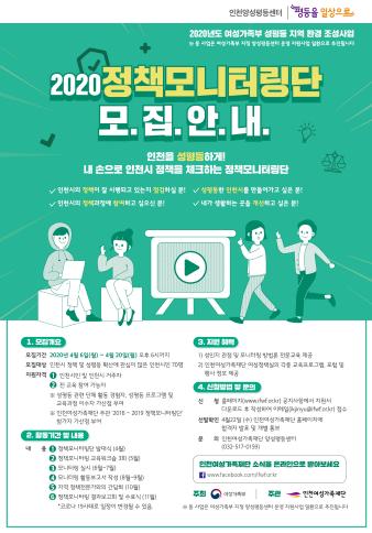 인천여성가족재단(대표이사 원미정)은 오는 20일까지 정책모니터링단으로 활동하고자 하는 인천시민을 대상으로 ‘체크-IN 정책모니터링단’단원을 모집한다고 밝혔다.