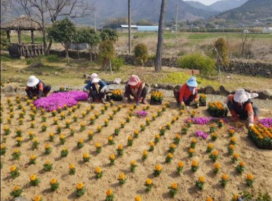 꽃묘심기는 새봄을 맞아 안양면을 방문하는 내방객들에게 활기찬 봄기운을 드리고자 진행됐으며 러넌큘러스, 메리골드 등 2,500여 본을 식재했다.