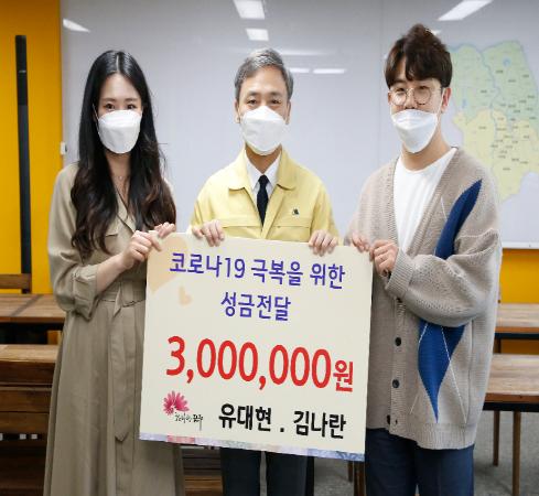 유 씨 부부는 당초 지난달 결혼식을 진행할 예정이었으나 코로나19로 결혼식을 미루게 되자 결혼식 대신 뜻깊은 곳에 활용하자는 취지에서 결혼비용의 일부를 성금으로 전했다.