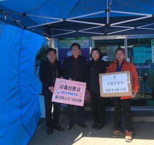 시흥신문사(회장 김화석)가 어르신들의 코로나19 감염을 막기 위한 마스크 1,000장을 월곶동행정복지센터에 후원했다.