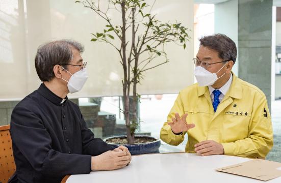 이번 방문은 코로나19 지역사회 확산 방지에 협조한 주요 종교시설에 감사의 마음과 추가 방역 마스크를 전달하고 종식 시까지 지속적인 사회적 거리두기 동참을 요청하기 위해 마련됐다.