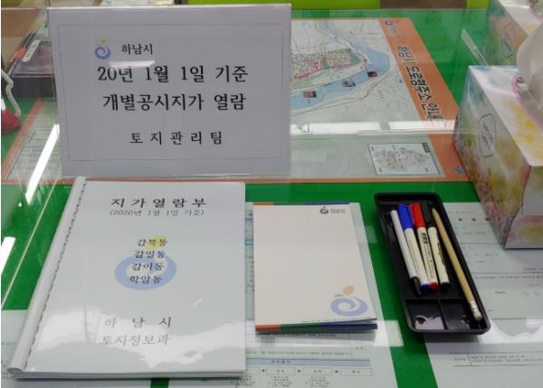 개별공시지가 열람은 국토교통부 부동산공시가격알리미(http://www.realtyprice.kr)에서 확인할 수 있고 코로나 19로 인한 사회적 거리두기에 적극적으로 동참하기 위해 시청 토지정보과(☎031-790-6151)의 유선문의를 적극 활용해 주기를 바라며, 의견제출은 부동산가격알리미 또는 하남시청 토지정보과로 제출하면 된다.