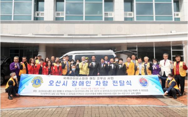 국제라이온스협회 354-B 경기지구(총재 김동희) 오산·오산중앙·오산운암·청죽 4개 라이온스 클럽은 17일 장애인 휠체어 리프트특장차량(4천5백만원 상당)을 경기도장애인복지회 오산시지부(회장 이만성)에 전달했다.