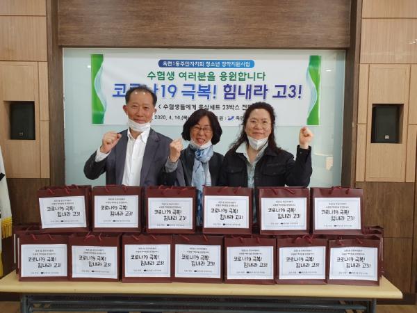 연수구 옥련1동 주민자치회(회장 김영채)는 지난 16일 ‘코로나19’확산으로 힘든 시간을 겪고 있는 취약계층 고등학교 3학년 학생들을 위해 ‘코로나19 극복! 힘내라 고3!’사업을 시행했다.