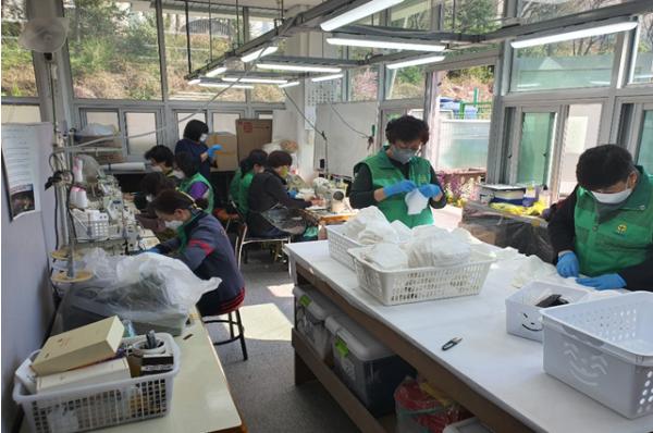 이번 면 마스크 제작은 보건용 마스크 구매가 어려운 중증장애인을 돕기 위해 부산시에서 마스크 원단과 필터를 지원하고, 새마을부녀회가 재능기부를 통해 마스크를 제작하기로 결정하면서 시작됐다.
