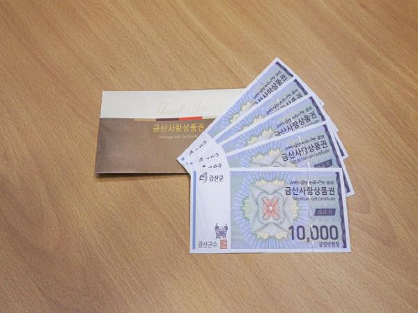 1년간 추진한 업무실적에 따라 일정금액을 차등 지급하는 금산군 공무원 성과상여금 중 9000만 원에 달하는 금액을 금산사랑상품권으로 지급했다.