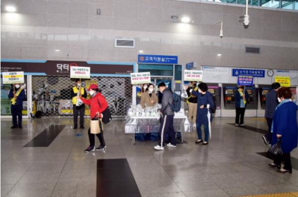호원2동 허가안전과는 따뜻한 봄 날씨와 제21대 총선 이후 코로나19에 대한 시민들의 경각심이 낮아지기 쉽다는 판단 하에, 코로나19로부터 자신뿐 아니라 사랑하는 사람의 감염까지 예방한다는 의미를 담아 ‘거리두기는 사랑입니다’라는 주제로 회룡역 일원에서 캠페인을 실시했다.