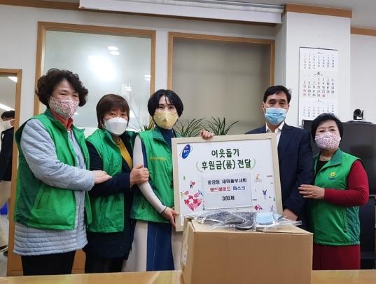 새마을부녀회는 이날 회원들이 직접 재단과 바느질을 해서 만든 수제 마스크 300개를 지역 취약계층에 전해달라며 중앙동 행정복지센터에 기탁했다.