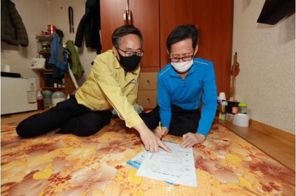 유성훈 구청장은 이날 독산2동에서 고령으로 거동이 불편하신 어르신 가구를 방문해 어르신들에게 재난긴급생활비 지원내용에 대해 알려드리고, 신청서 작성을 도와드렸다.