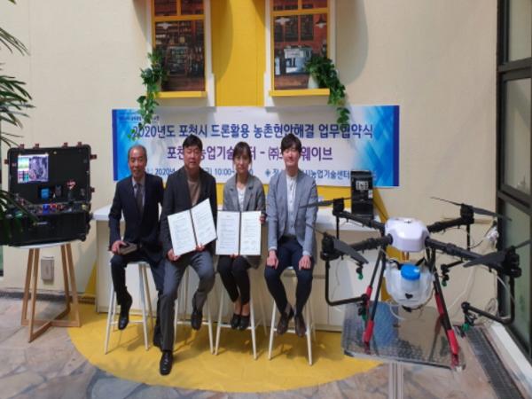 포천시농업기술센터는 지난 17일 포천시 소재 (주)포스웨이브(대표 김지연)와 드론활용 농업현안문제해결을 위한 업무협약을 체결했다.